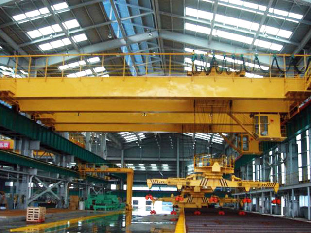 電磁盤(pán)式起重機(jī)帶有可卸的電磁盤(pán),特別適用于冶金工廠在室內(nèi)或露天的固定跨間較繁重地裝卸及搬運(yùn)具有磁性的黑色金屬制品與材料(如鋼錠、型鋼、生鐵塊)在機(jī)械廠、庫(kù)房中也常用來(lái)搬運(yùn)鋼料、鐵塊、廢鐵、廢鋼、鐵屑等物料。起重設(shè)備電磁橋式起重機(jī)屬于重級(jí)(A6)工作制度,起重機(jī)包括電磁盤(pán)自重。